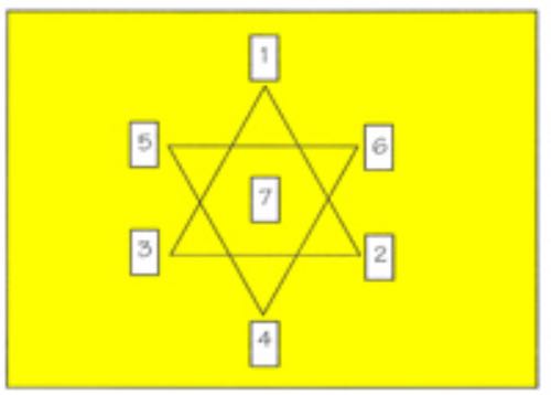 Para proceder, luego de barajar y cortar las cartas el consultante extraerá siete del mazo. El cartomante las colocará formando dos triángulos, el primero de vértice superior y el segundo de vértice inferior.