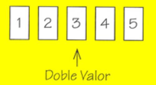 Una vez efectuado el recuento, se considerará que la carta central tiene doble valor, es decir, que si se encuentra en posición derecha será igual a dos «SÍ» e invertida equivaldrá a dos «NO».
